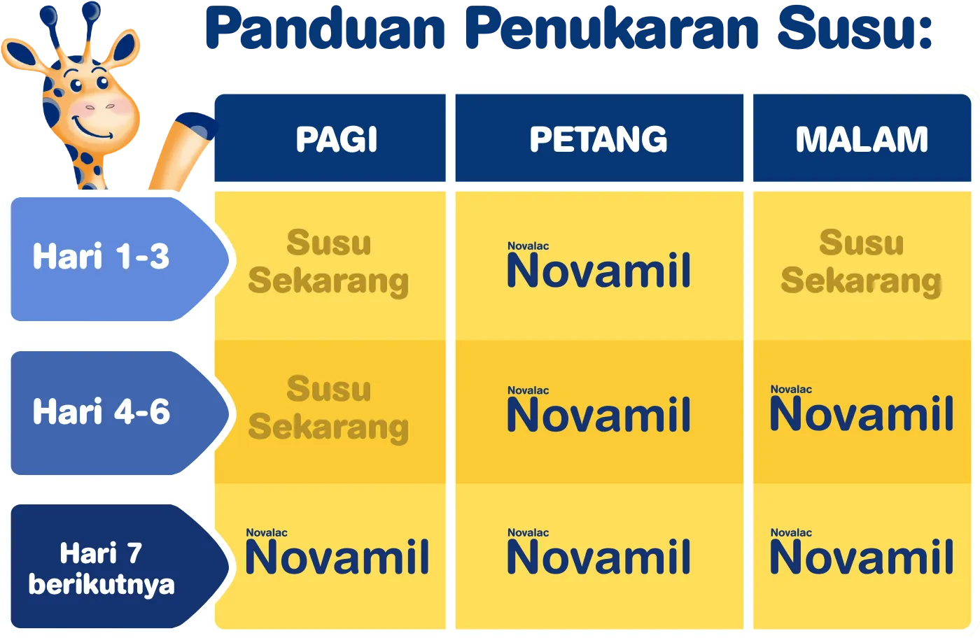 Formula susu mengandungi 29 nutrien penting untuk pemakanan yang seimbang. Ia diperkaya dengan tokoferol (sejenis Vitamin E) untuk meningkatkan imuniti kanak-kanak. 3 gelas/hari akan memenuhi 100% RNI Vitamin A, B kompleks, C, K, Zink & besi.